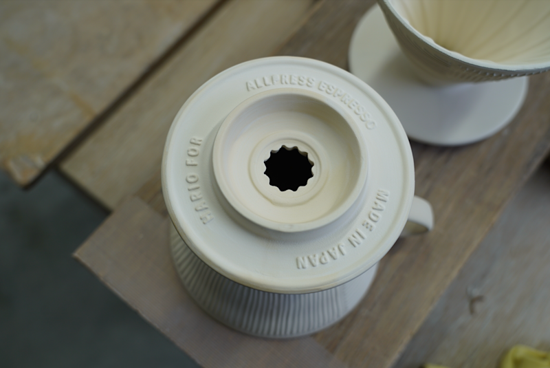 HARIO x Allpress V60 handcrafted in Japan, exclusively for Allpress. Each filter cone is dipped in a custom glaze, inspired by the jade tiles of our Tokyo Roastery, with our signature raked pattern reminiscent of drying coffee cherries at origin etched in.